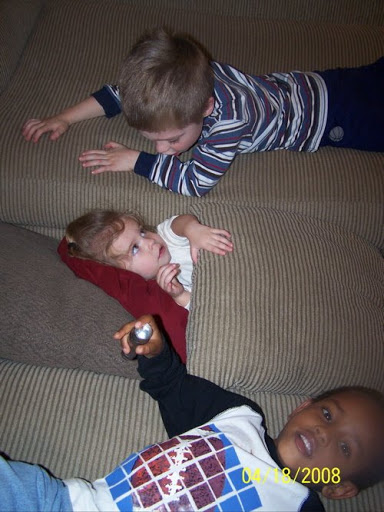 Everything is going great. Tariku continues to impress us with his ability to be happy in pretty much all situations. It is quite obvious he’s used to having older sibling-like people in his life and he’s even taken quite a liking to being a big brother. Dailah has 2 big brothers doting on her every move. Yesterday they were outside, she kept kicking off her crocs and grunting for one of her brothers to come help. One of them inevitably would and then they would help her up the stairs and down the stairs. They’d brush her off if she fell. It’s getting kind of ridiculous. They even like playing with her, in the picture with her in all the cushions…yeah that’s from her brothers. You’d feel sorry for her stuck there if you didn’t know that she loved every minute of it and didn’t want them to let her out. 🙂 My heart is bursting with love! Check out these pics, kind of crazy. (Oh, and Bodystep went well, I am exhaustapated and sore today).
