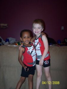 Anyway, I’ve been practicing all day today and we also braved the Y this morning. We put Tariku (and other kids) in the child watch as a trial run to see if he’d make it so I can get back to teaching classes (I’m going through workout withdrawls). He was in there for about an hour and he did great! Came running to me when I got back, etc. So that’s awesome. Things are going well.
