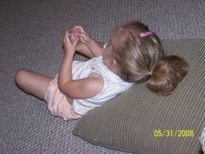 This is how Dailah likes to watch cartoons in the morning.