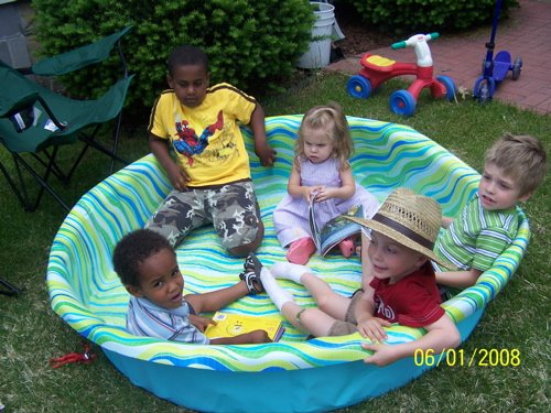 Kids in the kiddie pool at Oliver’s party.