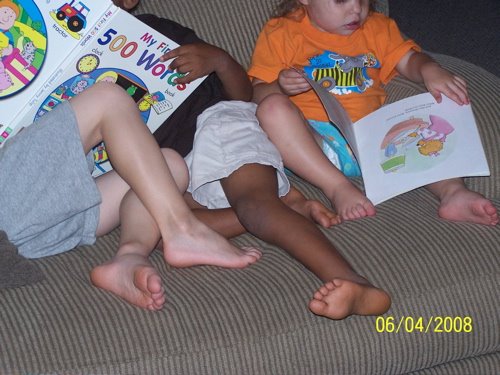 I just loved this picture. The kids love reading, look at all of their legs entwined, so cute.