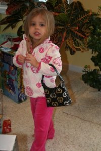 A new outfit and purse…which houses gum and chapstick, her two faves.