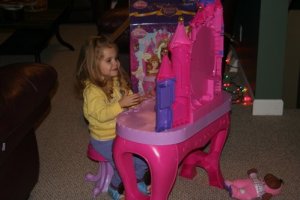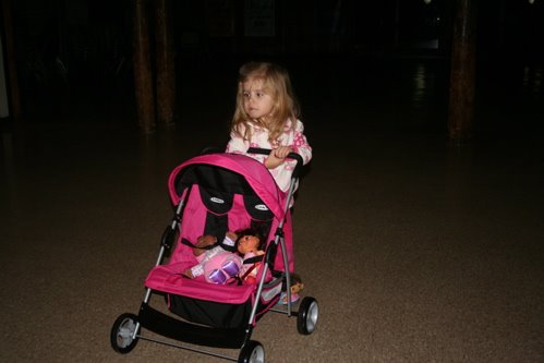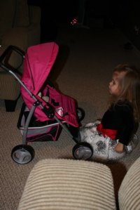 Dailah also got a baby stroller from her Dawson grandparents, here she is telling babies if they don’t settle down they’re in time out.