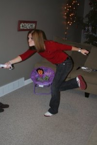 ok, no more lying. I love the Wii. Unfortunately, it does tend to bring out my already competitive nature. Example A, me getting killed by Zach in bowling.