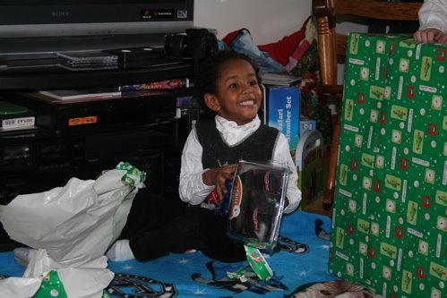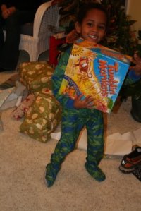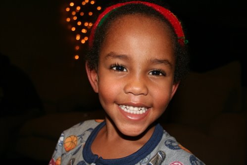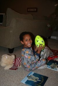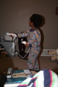 Well, as the boys pointed out, they were really good this year so Santa did bring us the Wii afterall. This is Tariku and his favorite game (boxing) jeesch.