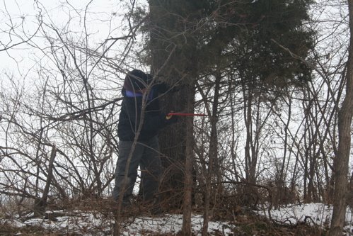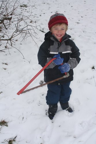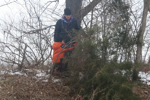 Nothing better in the short time they were away so we went back to the first one we saw (or rather, the only one we saw). And declared it ours. Zach commenced to cutting down with the weakest saw Camp has (we found out once we started cutting).