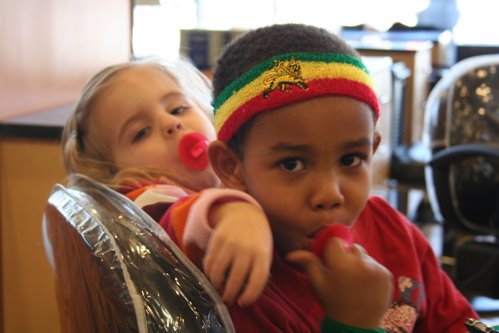 Raced off to get Dailah and me some hair cuts. Tariku tagged along. They were well behaved and thus deserved ring pops.