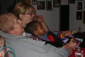 Tariku getting in some quality snuggle time with auntie Leslie (he NEVER does this, he struggles slowing down a bit).