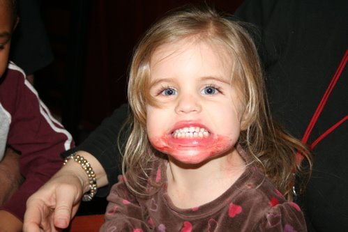 She looks like one of those little old ladies whose hands aren’t as steady as they use to be. Now we know she’ll still be adorable even with lipstick all over her face.