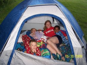 And it turned out fun (except for the sleep thing). After a yummy cookout, some games, and some books we tucked the kids in. They wanted to sleep in the same tent together so we let them try. After an hour of their precious giggles coming from the tent we separated them. Dailah and hotflawedmama in one tent, the boys in the other. Which basically means Dailah and I froze with 0 body heat and Zach woke up dripping in sweat. Anywho, worth the memories. And the pictures.
