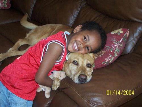 Trysten with his woosha (dog).