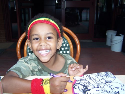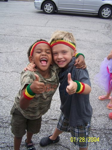 ETA: The boys decided to wear their Ethiopian sweat bands. When we were at the balloon table a woman and Trysten/Tariku had this conversation.