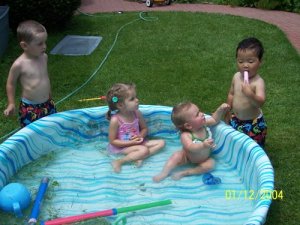 About 2 weeks ago we had a play date. And I’m just getting around to posting about it. It was fantastic. The weather was perfect, the kids had a fantastic time and the moms might have enjoyed our freshly brewed coffee and made from scratch scones. Beth, Leslie, Becky and hotflawedmama (and respective children) had a grand time and are hoping to repeat it many more times.