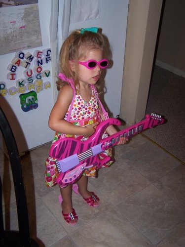 She was a rockstar with her new guitar, glasses and high heels.