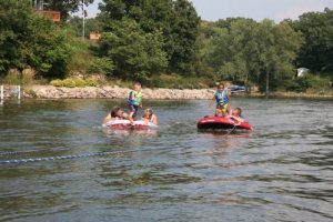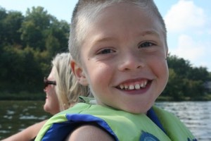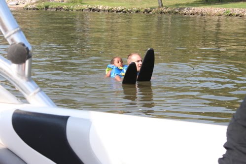 Trysten trying to ski. Would’ve made it but he let go when the boat got loud. Nice.
