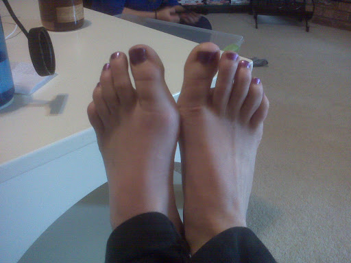 That meant for the whole day (with the exception of when I was either walking through the Y-they have a policy about barefeet-or teaching my classes) my piggies looked like this.