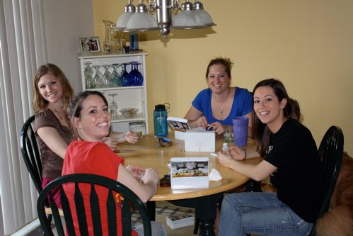 Then we worked on putting ribbon on bubbles. A table full of sisters and bubbles!