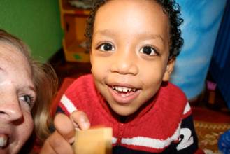 Binyam went right for us this time. Cuddled onto our laps and stayed around us the whole time for the most part. If he went to get a toy he would bring it back to us (unlike this morning when he would just wonder off to play by himself). He kept dragging nannies over to “introduce” us. Binyam talked nonstop and would try to get me to understand him with all his might, poor guy. The head nurse described Binyam as “full of concentration” and, again, she was right. He could stay with the same toy the whole time, unlike his brother who cycled through a good 200. 🙂 You can constantly see the wheels turning on this one. Binyam has an incredibly infections laugh, at one point he and I were laughing so hard we both had tears and I have absolutely no idea why. There’s a decent chance he just said, “I can’t believe I got a crazy-woman for a mom!” Whatever it was, it had the both of us on the floor holding our sides, a precious moment amongst many precious moments.