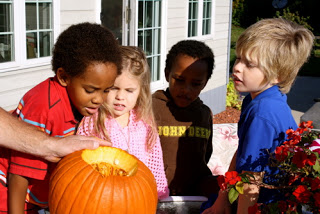 This past weekend at my parent’s house the kids got to carve a pumpkin. Tomas looked at me, “Why we do this?” I reminded him of the crazy Americans. He seemed to accept that as a justifiable reason as to why we would gut a perfectly good food item and carve it out to scare little children. I, on the other hand, have become increasingly skeptical of some of our traditions. πŸ™‚