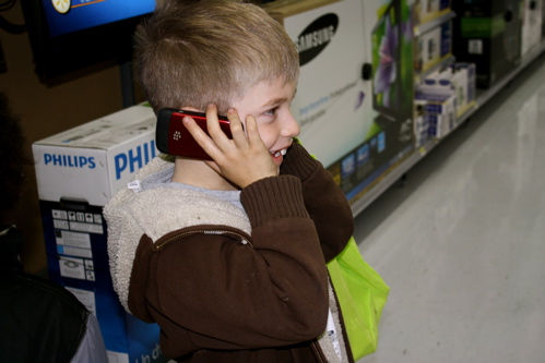 When we got to the DS case we noticed he could have the regular DS or we could give him a few more dollars and he could get the DSi (xl) that came with a game. So we looked at him, told him how proud we were of him and told him he could have the big one and we’d spot him the last few dollars. He turned to me and said, “Thank you for making my dreams come true.” Sniff, sniff.