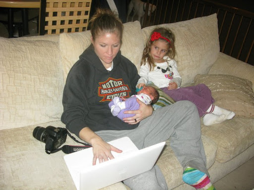 That’s it. Oh, and this is me. Granted, I was working on the Wine to Water party at this very moment but I still love this picture. The essence of multi-tasking. And look at Dailah’s face. A girl taking notes. Oy! And should I mention the sweatpants? Yeah I didn’t think I should either.