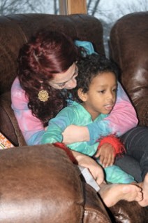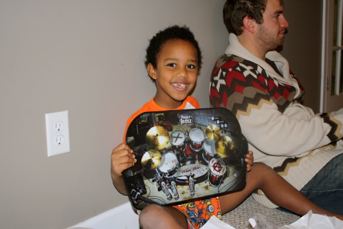 Frank gets the kids a big present every year. This year he had them hide his eyes before the big unveiling. This was Tariku’s reaction when he saw snowboards (for him and Trysten) and a bike (for Tomas).