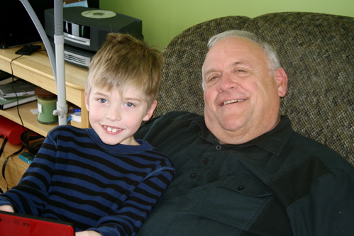 Papa Frank watched as Trysten showed him his new moves on the DS.