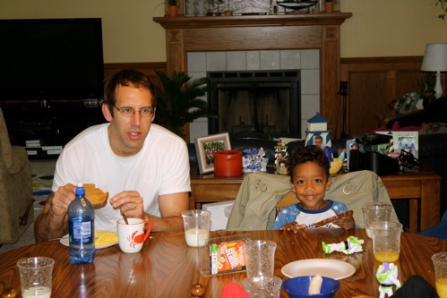 Zach rises and shines and we have coffee together (one of my favorite parts of every day). Ignore his facial expression, this is one of his favorite parts too.