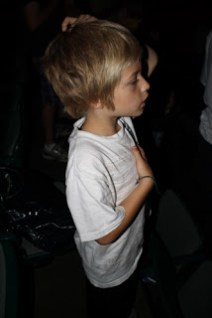 Trysten was just waking up from his nap. He still plays with his hair when he’s tired…even during the Star Spangled Banner.