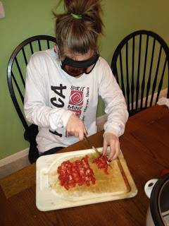 The smell lingered for HOURS people. HOURS. The kids ran outside to escape the potency. I, however, kept the goggles on during all food prep until the smell dissipated.