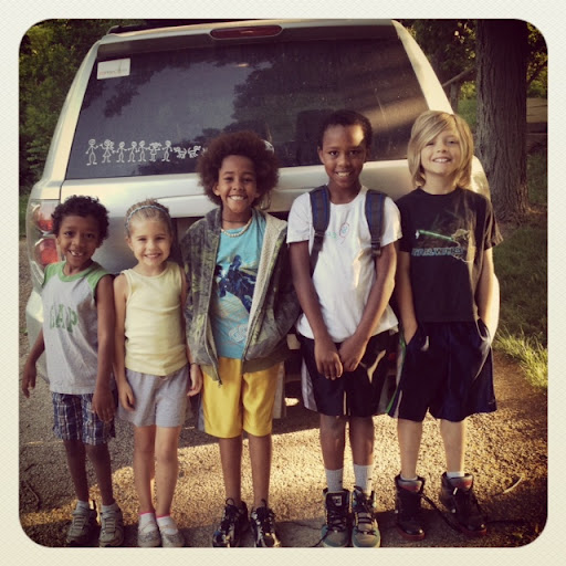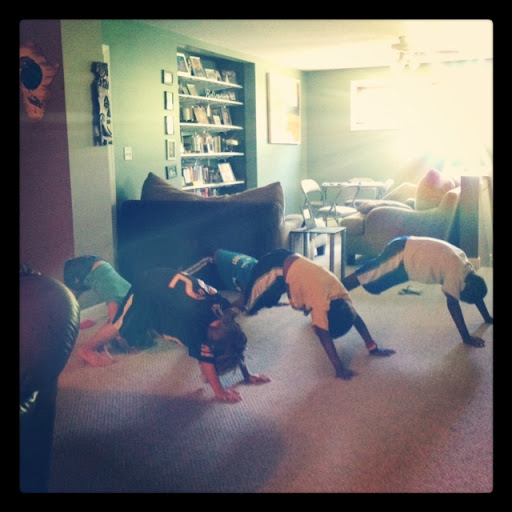 This summer I’ve started doing yoga with the kids. I couldn’t believe how they all just went right into it without goofing around or giggling or farting for a full 45 minutes. The last 10 minutes of meditation they were all still and silent. They beg me for it everyday. Love that.