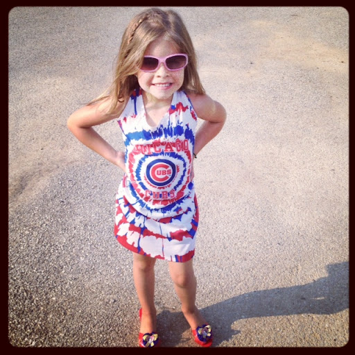 She borrowed my tank top, tied it in the back and made herself a dress. She gets that from her dad, as mentioned previously.